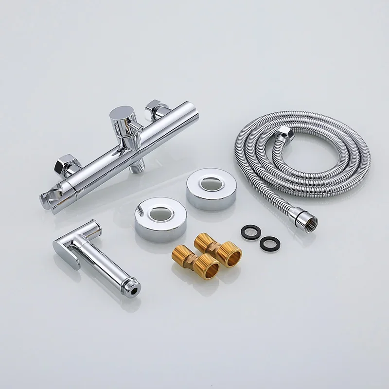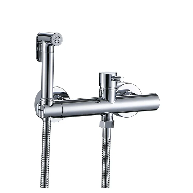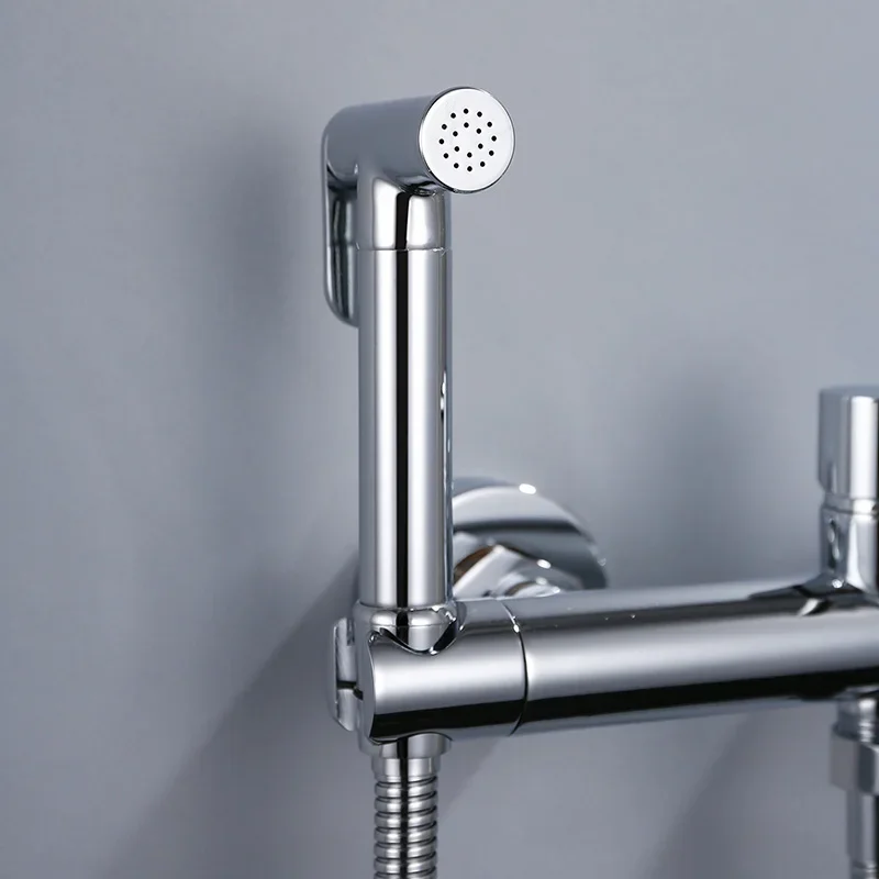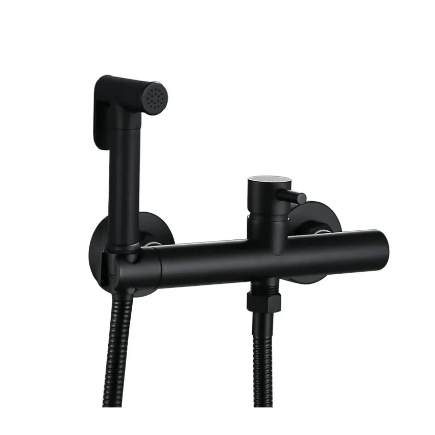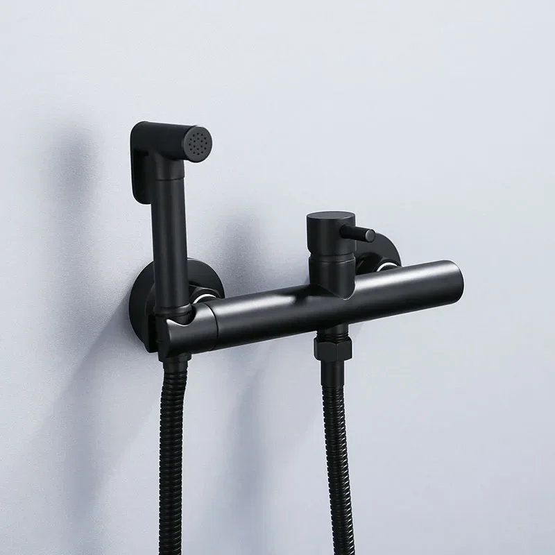 Matte Black & Chrome Bathroom Bidet Sprayer Kit. Solid Brass Hot and Cold Mixer Wall Mounted Bidet Faucet