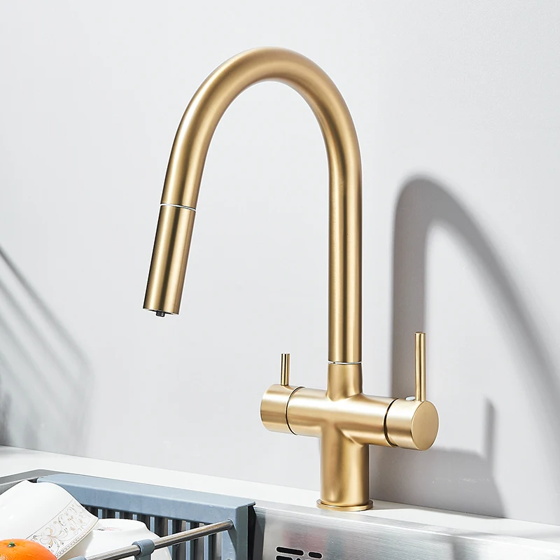 Pure Water Filter Kitchen Faucet Pull Out Flexible Kitchen Faucets Dual Handle Stainless Steel 2 in 1 Hot Cold Water Mixer Tap