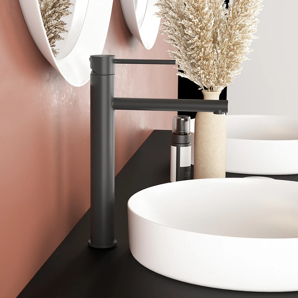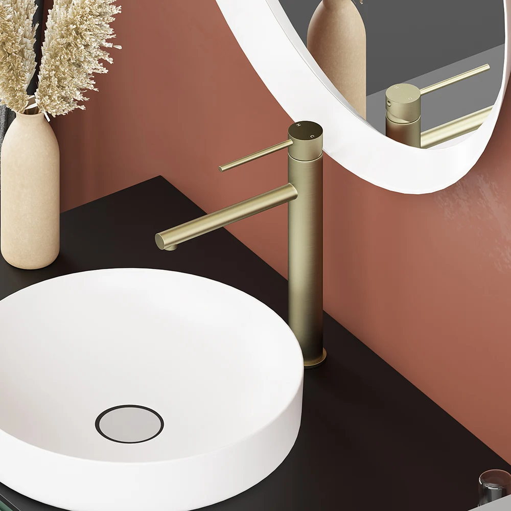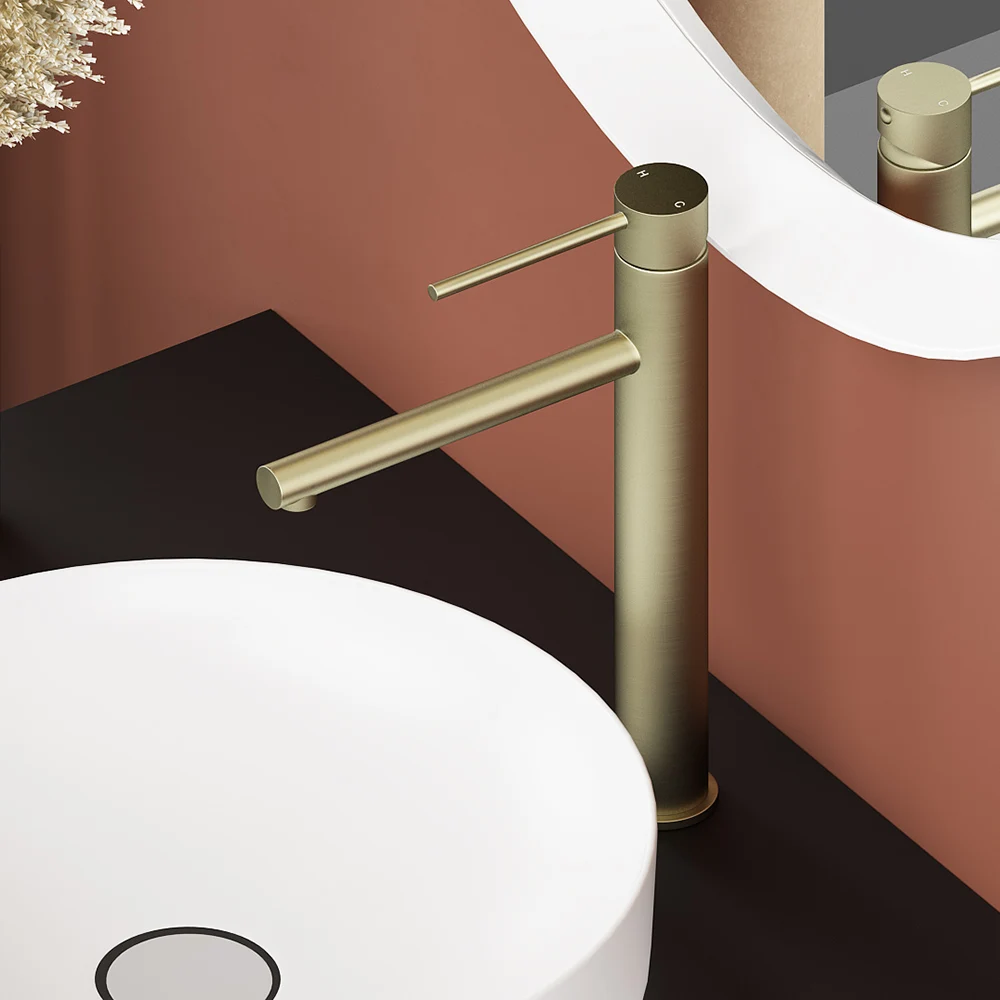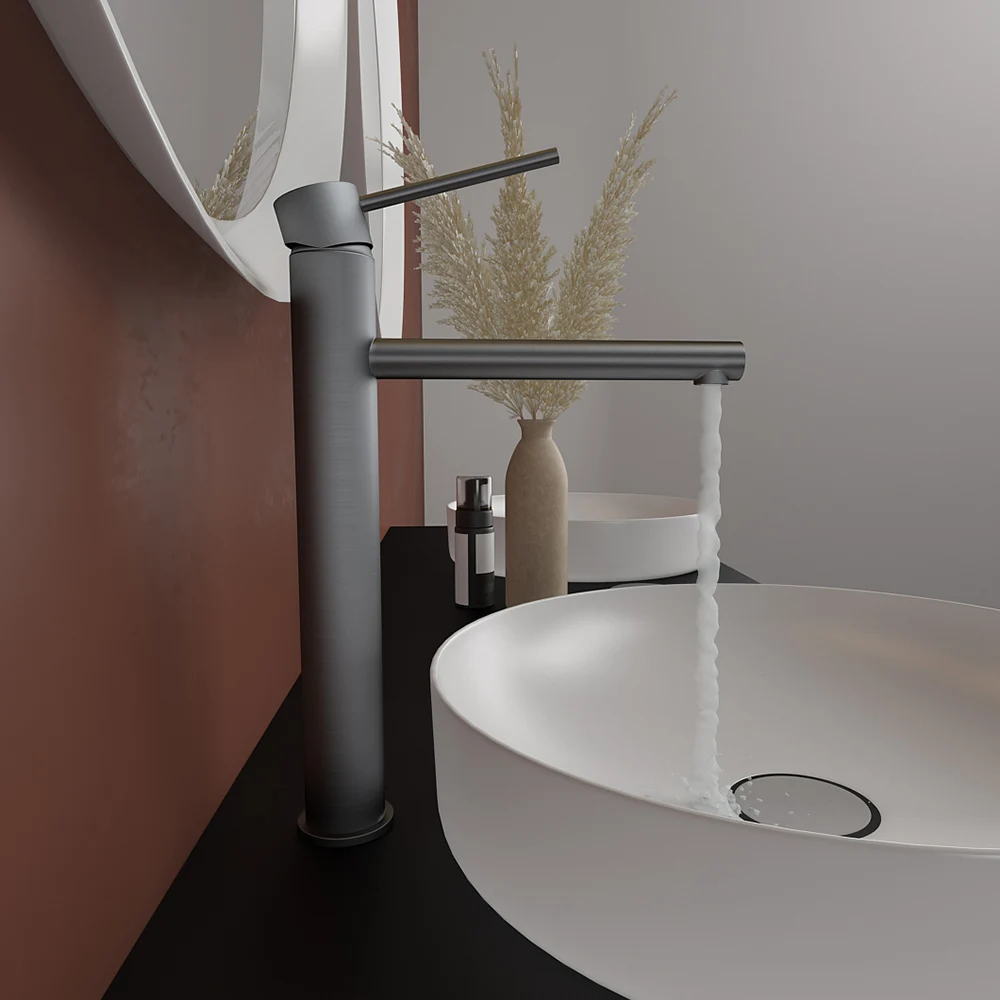 Vessel Bathroom Basin Faucet Brushed Rose Gold Tall Faucet Cold Hot Deck Mounted Mixer Water Tap Gun Metal, Brushed Gold, Black